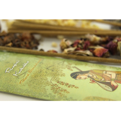This blend brings the alluring scent of sandalwood, a classic oriental woody note, the hint of romantic rose and undertone of vanilla into your space. A ragini is a female raga, an ancient melodic form of Indian classical music played in a certain scale of notes with its own melodic form and associated mood. The ragini is always played or sung after its raga, or husband, with its composition reflecting the tantric elements of the male and female energies. The raga-ragini combination evolved from the spiritual practice of Tantra around the 14th century. Together the static and dynamic energies create mood-evoking music. Let the distinct atmosphere of this meditative and contemplative ragini fill your space, touch your spirit and inspire your mind. Aroma: This scent features Rose and Vanilla. Intention: Romance. Key features: Handmade by artisans in India’s cottage industry Fragrant aromatherapy Mood uplifting Green: Prabhuji’s Gifts is a Green America Gold Certified business, packages its stick incense in 100% recycled cardboard, and uses recycled and reused packaging products for shipping materials. Charitable cause Attributes This exotic stick incense is hand rolled by artisans in India’s cottage industry and blended in accordance with ancient traditional wisdom, designed to bring the mood of love into your space. Name explanation: Ragini Kakubha is the personification of an ancient melody of a woman who is waiting impatiently for her lover. Why customers love it: Herbs, flowers and resins are blended together with pure oils and pure sandalwood, combined in accordance with ancient traditional wisdom. This line of incense is designed to elevate the mood in one’s space, whether it be to create the feeling of longing, romance or mystery. It is also burned for pure aromatic pleasure. Collection: Harmony Incense Sticks Collection Description: This is one of 13 unique fragrances that bring romantic and mysterious moods, enticing vibrations and dynamic energy into one’s space. Each one of these fragrances is named after a Ragini, the feminine musical aspect that evolved from Tantra: the worship of the male and female cosmic energies. Raginis color the mind with their individual hues and notes, evoking memorable moods, carrying vibrations that can transform the feeling in the air to that of romance, love, longing, and even playfulness. Packaging: Colorful packaging made from 100% recycled cardboard, artistically displaying traditional Indian artwork that portrays the personification of each specific Ragini. This incense is kept fresh in a plastic pouch and can be seen through an oval window. A hole in the top makes it ideal for displaying on a hanging rack. Manufacturing process: Natural ingredients are blended together into a paste and hand rolled onto a thin bamboo stick, according to ancient traditional wisdom, in a sustainable manner by artisans in India’s cottage country, providing employment to rural villagers. An auditor ensures there is no child labor. Certifications: Gold-level Green America Certified Business Better Business Bureau (BBB) Accredited Business: rating A+ Sustainability: Ingredients are harvested, blended, and hand rolled in the traditional Indian method, producing minimal waste and employing artisans in India’s rural cottage industry. This product’s package is made from 100% recycled paper, and shipping materials are made from recycled and reused packaging products. Charitable Cause: Prabhuji’s Gifts supports Prabhuji Mission, a New York-based, nonprofit religious organization that is home to a spiritual community. Prabhuji mission runs humanitarian projects including: Prabhuji Food Rescue Program, in which the organization feeds people in need in the USA, Dominican Republic, Colombia and India. By purchasing Prabhuji’s Gifts products, you help support these causes. Ingredients Herbs, flowers and resins are blended together with pure oils and pure sandalwood, combined in accordance with ancient traditional wisdom and hand rolled onto a thin bamboo stick. How to use: Light the coated tip of the incense until it ignites. Blow it out and place the smoking incense stick in an incense holder. Specs SKU: 213-48 UPC: 8-09581-21348-5 Contains: 10 sticksLxWxH: 9.5”x2.5”x0.15″Weight: 0.8oz. Made in: India Return Policy: This product is fully refundable.