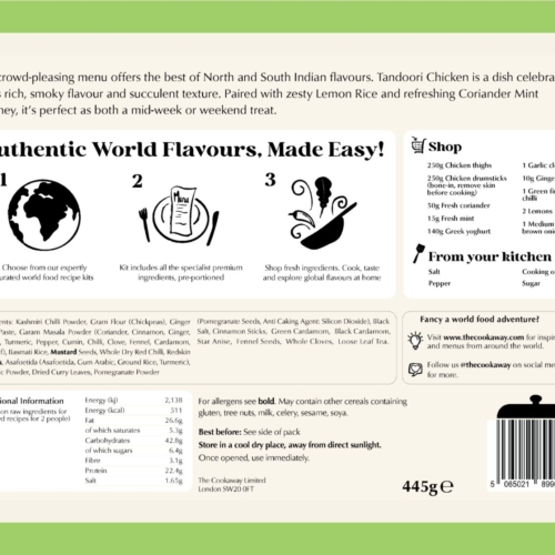 Indulge in the bold flavours of India with our Tandoori Chicken, fragrant lemon rice and refreshing coriander mint chutney.