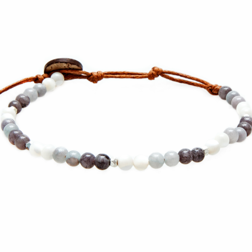 Harness the power of natural energy stones to align with your highest good and best self! Find the healing property that speaks to your needs and wear your healing bracelet with intention. Amazonite Inner Peace Amazonite soothes the spirit and calms the soul. It promotes clarity and self-love. Mother of Pearl Imagination Radiating the soothing energy of the ocean, Mother of Pearl stimulates imagination and intuition. Materials: Amazonite + Mother of Pearl, Quartz Colors: Grey, Purple, White Adjustable to fit most wrists *You will be receiving the bracelet that the arrows are pointing toward*Made in Thailand