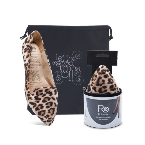 These pointed leopard print flats are the next generation of Rollasole. Sophisticated, sassy and beautifully crafted. Keep them in your clutch when your heels to start pinch to give you ultimate comfort and catwalk charm.