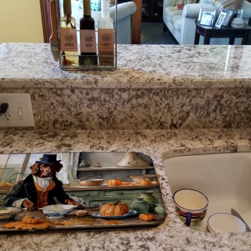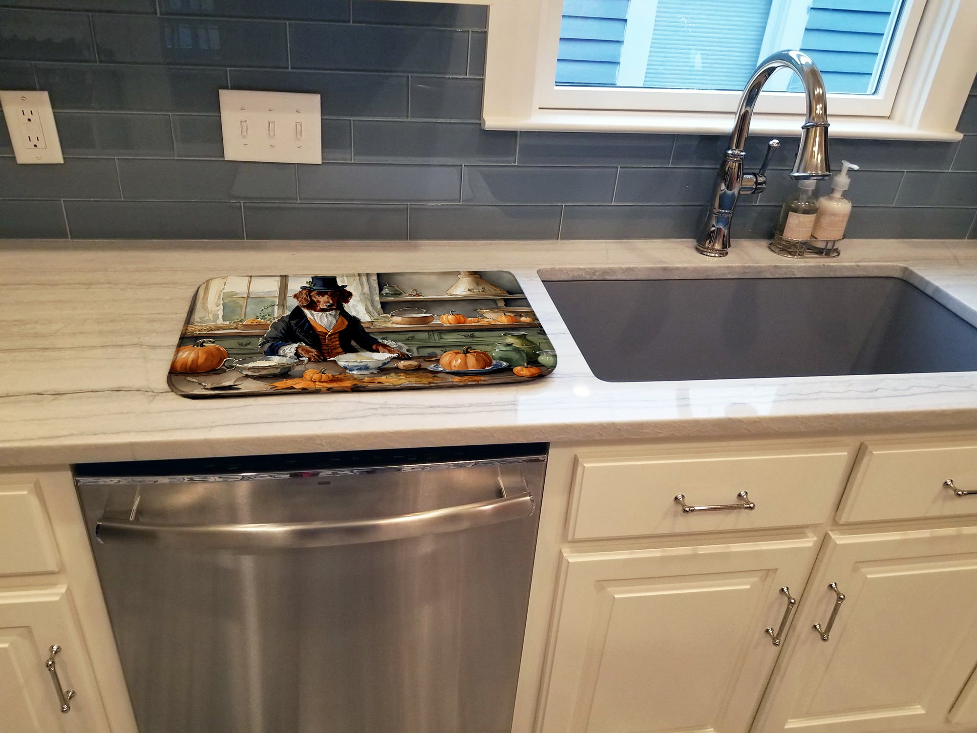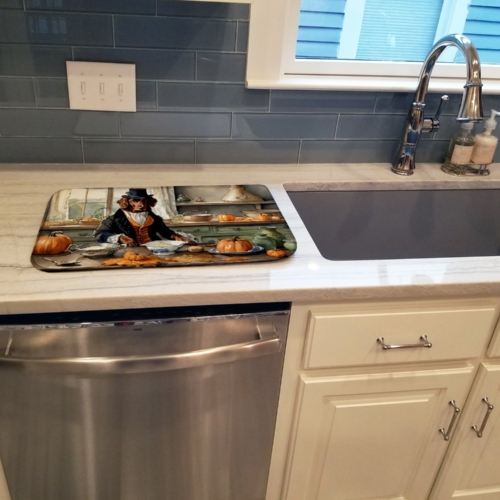 Dish Drying Mat featuring breed specific Irish Setter artwork. Celebrate Halloween with this Halloween Dish Drying Mat. Say goodbye to messy countertops and soggy dish towels with our innovative dish drying mat. Our high-quality dish drying pad is designed to keep your countertops dry while offering a stylish and efficient solution. Whether you’re air drying dishes, glasses, stemware, silverware, pots, pans, bottles, or even fruits and vegetables, our dish mat is the perfect choice. The 14 inches x 22 inches size fits most counters and dish drying racks, and the non-slip design ensures stability. Made with water-absorbent polyester and a polyurethane foam insert, our dish drying mat is not only functional but also durable. It’s machine washable and printed in the USA for long-lasting use. The beautiful artwork adds flair to your kitchen decor, making it a perfect housewarming gift or present for any occasion. Upgrade your kitchen experience with our absorbent and versatile dish drying mat.