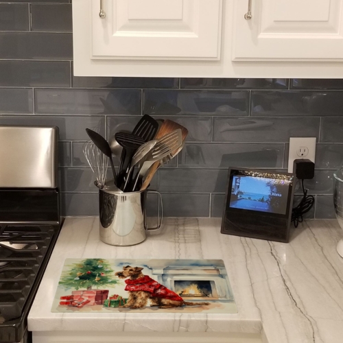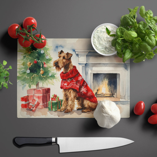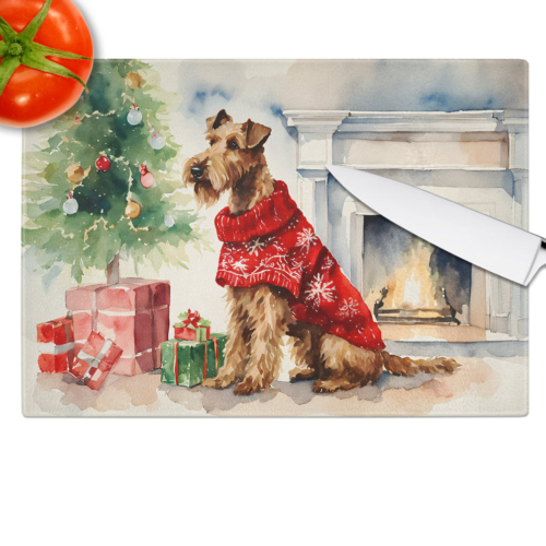 Irish Terrier Cozy Christmas Glass Cutting Board