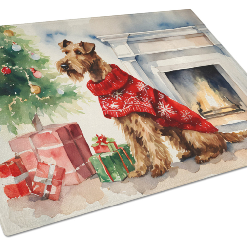 Irish Terrier Cozy Christmas Glass Cutting Board