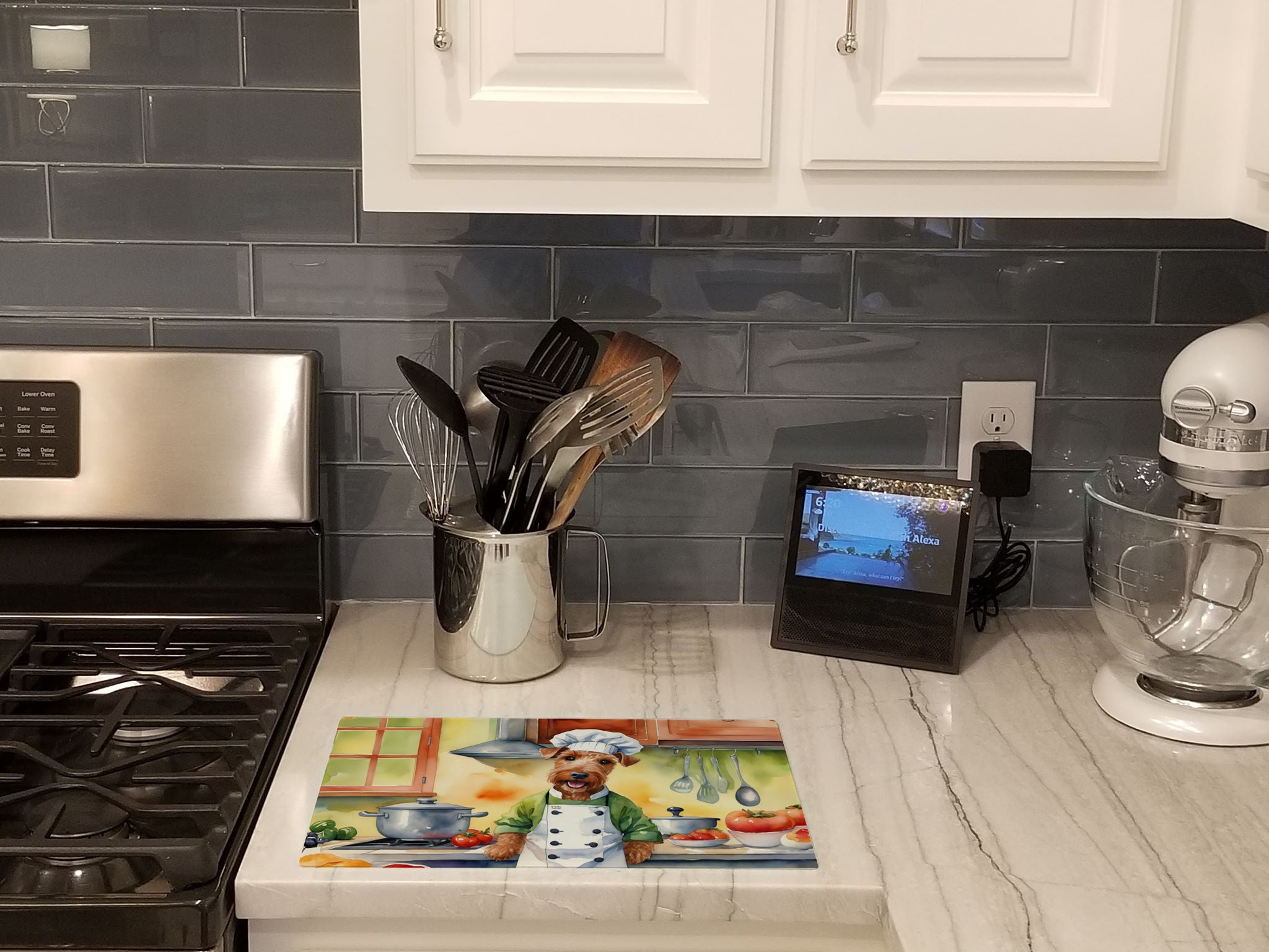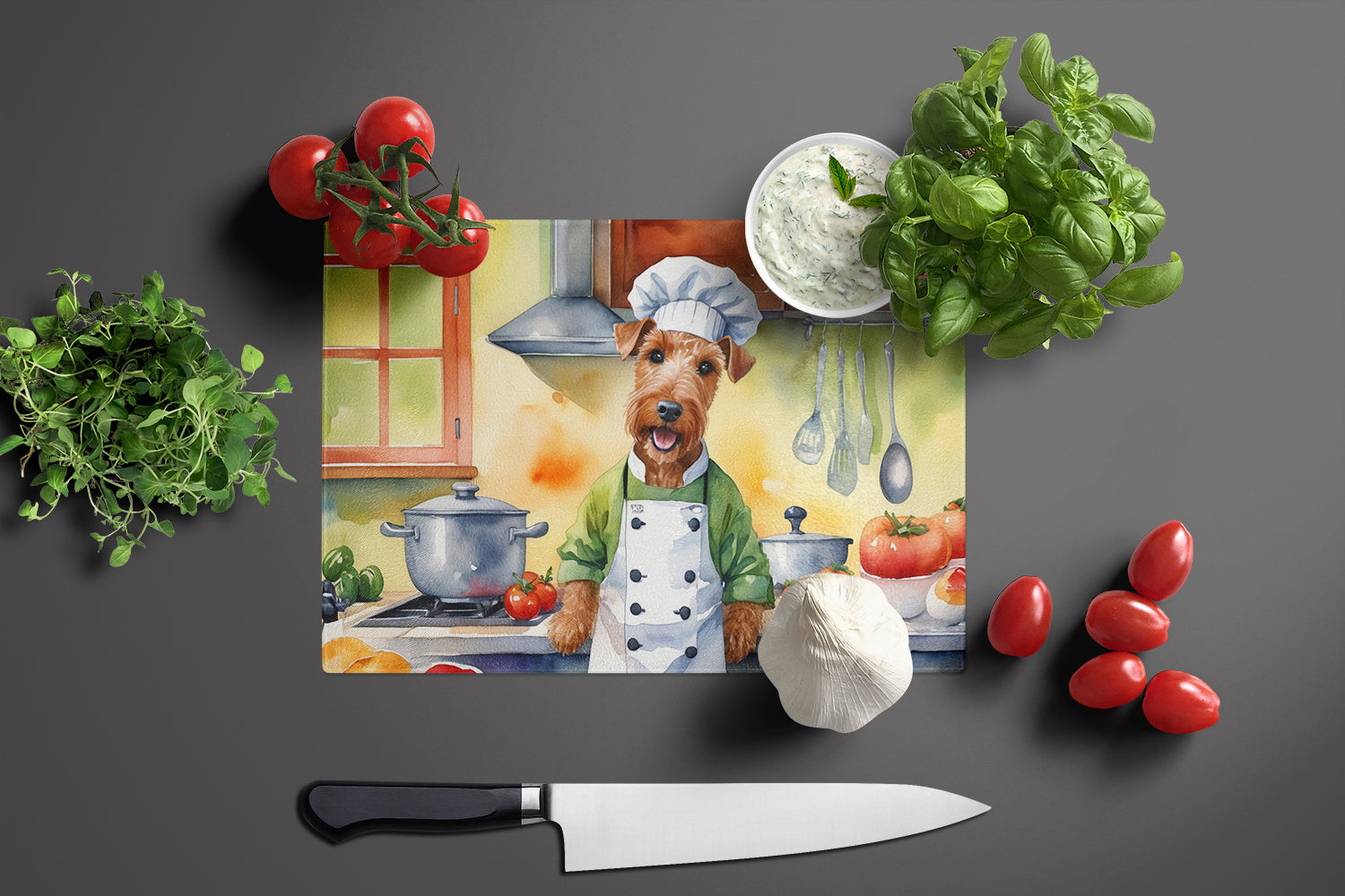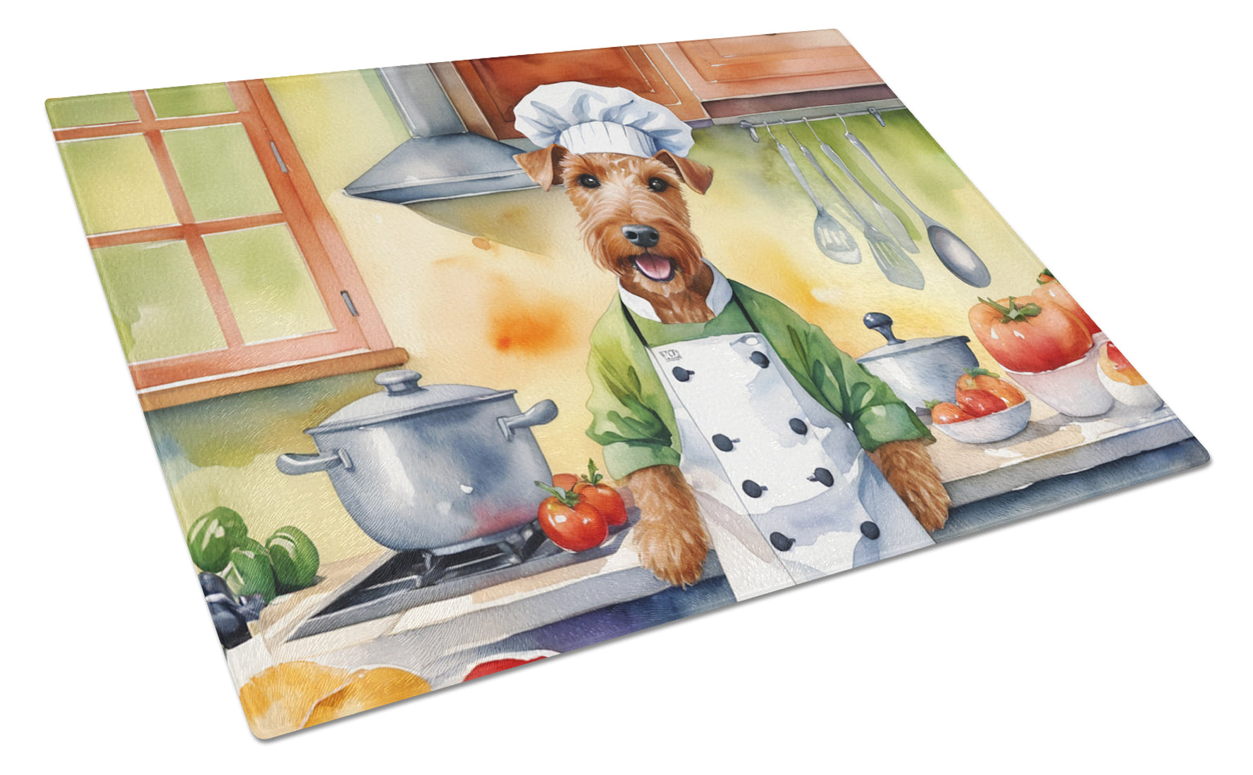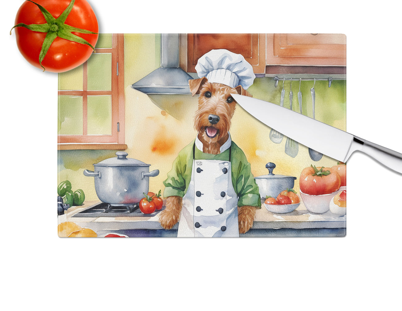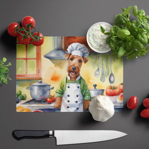 Glass Cutting Board featuring breed specific Irish Terrier artwork. Introduce your kitchen to the vibrant, large Decorative Glass Cutting Board from Caroline’s Treasures. Crafted from resilient tempered glass, this board is not only a utilitarian necessity but also a colorful art piece. With its generous dimensions of 15 inches in height and 12 inches in length, it offers ample space for all your cutting needs. Every piece showcases captivating artwork from distinguished artists, bringing an aesthetic edge to your kitchen. Beyond its attractive design, this cutting board ensures your countertop stays pristine and unscathed, owing to its heat-resistant properties. Engineered with user convenience in mind, it features non-skid feet for stability, and rounded corners for additional safety. Its robust construction renders it virtually unbreakable, guaranteeing longevity. The board comes with protective feet bumpers, maintaining its position during use. This product is recommended to be hand washed only. Proudly printed and assembled in the United States, this cutting board exemplifies superior craftsmanship. With Caroline’s Treasures’ Decorative Glass Cutting Board, you’re investing in a blend of functionality and artistic flair.