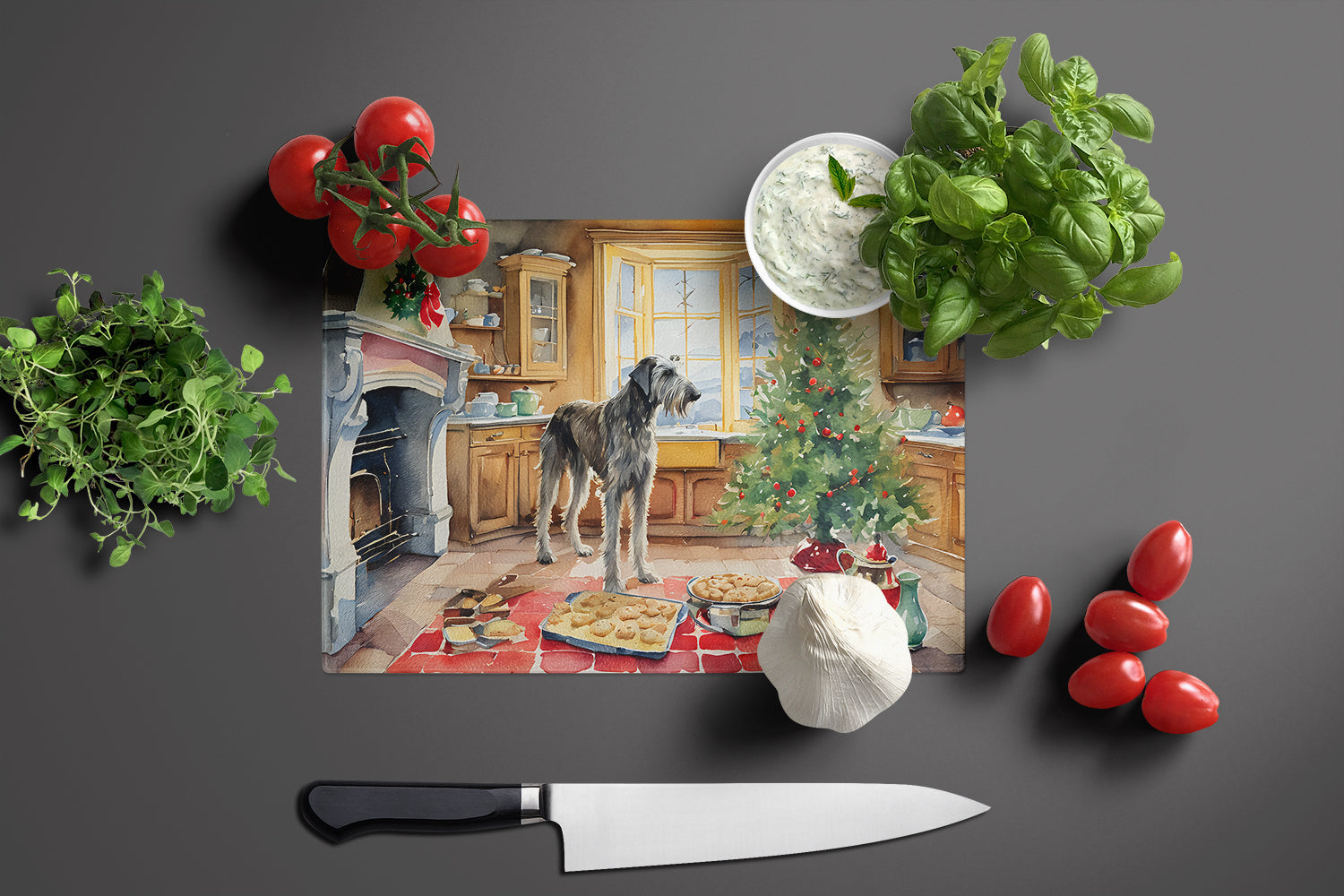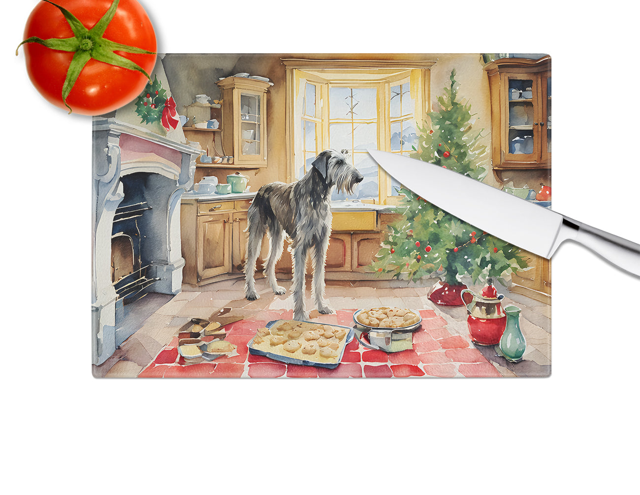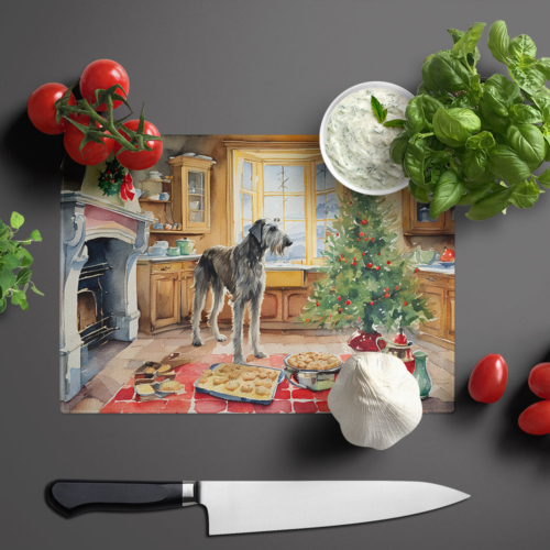 Glass Cutting Board featuring breed specific Irish Wolfhound artwork. Celebrate Christmas with this Christmas Cutting Board. Introduce your kitchen to the vibrant, large Decorative Glass Cutting Board from Caroline’s Treasures. Crafted from resilient tempered glass, this board is not only a utilitarian necessity but also a colorful art piece. With its generous dimensions of 15 inches in height and 12 inches in length, it offers ample space for all your cutting needs. Every piece showcases captivating artwork from distinguished artists, bringing an aesthetic edge to your kitchen. Beyond its attractive design, this cutting board ensures your countertop stays pristine and unscathed, owing to its heat-resistant properties. Engineered with user convenience in mind, it features non-skid feet for stability, and rounded corners for additional safety. Its robust construction renders it virtually unbreakable, guaranteeing longevity. The board comes with protective feet bumpers, maintaining its position during use. This product is recommended to be hand washed only. Proudly printed and assembled in the United States, this cutting board exemplifies superior craftsmanship. With Caroline’s Treasures’ Decorative Glass Cutting Board, you’re investing in a blend of functionality and artistic flair.