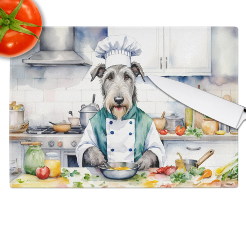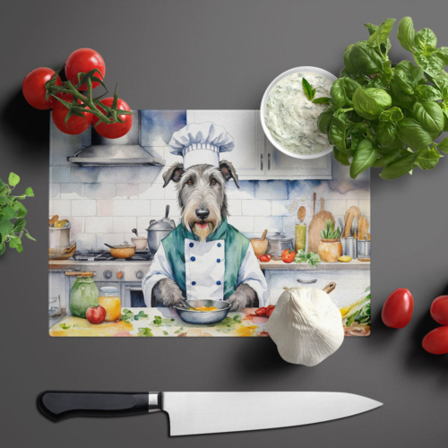 Glass Cutting Board featuring breed specific Irish Wolfhound artwork. Introduce your kitchen to the vibrant, large Decorative Glass Cutting Board from Caroline’s Treasures. Crafted from resilient tempered glass, this board is not only a utilitarian necessity but also a colorful art piece. With its generous dimensions of 15 inches in height and 12 inches in length, it offers ample space for all your cutting needs. Every piece showcases captivating artwork from distinguished artists, bringing an aesthetic edge to your kitchen. Beyond its attractive design, this cutting board ensures your countertop stays pristine and unscathed, owing to its heat-resistant properties. Engineered with user convenience in mind, it features non-skid feet for stability, and rounded corners for additional safety. Its robust construction renders it virtually unbreakable, guaranteeing longevity. The board comes with protective feet bumpers, maintaining its position during use. This product is recommended to be hand washed only. Proudly printed and assembled in the United States, this cutting board exemplifies superior craftsmanship. With Caroline’s Treasures’ Decorative Glass Cutting Board, you’re investing in a blend of functionality and artistic flair.