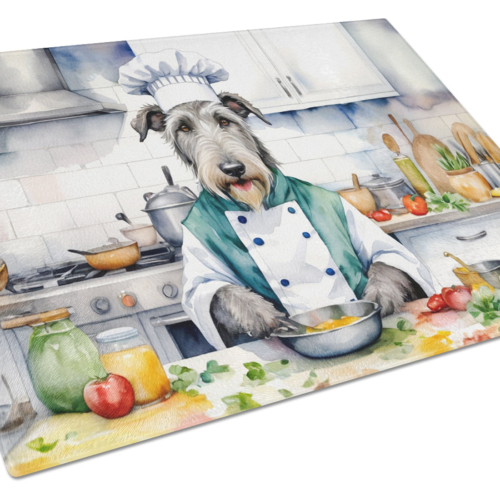 Glass Cutting Board featuring breed specific Irish Wolfhound artwork. Introduce your kitchen to the vibrant, large Decorative Glass Cutting Board from Caroline’s Treasures. Crafted from resilient tempered glass, this board is not only a utilitarian necessity but also a colorful art piece. With its generous dimensions of 15 inches in height and 12 inches in length, it offers ample space for all your cutting needs. Every piece showcases captivating artwork from distinguished artists, bringing an aesthetic edge to your kitchen. Beyond its attractive design, this cutting board ensures your countertop stays pristine and unscathed, owing to its heat-resistant properties. Engineered with user convenience in mind, it features non-skid feet for stability, and rounded corners for additional safety. Its robust construction renders it virtually unbreakable, guaranteeing longevity. The board comes with protective feet bumpers, maintaining its position during use. This product is recommended to be hand washed only. Proudly printed and assembled in the United States, this cutting board exemplifies superior craftsmanship. With Caroline’s Treasures’ Decorative Glass Cutting Board, you’re investing in a blend of functionality and artistic flair.