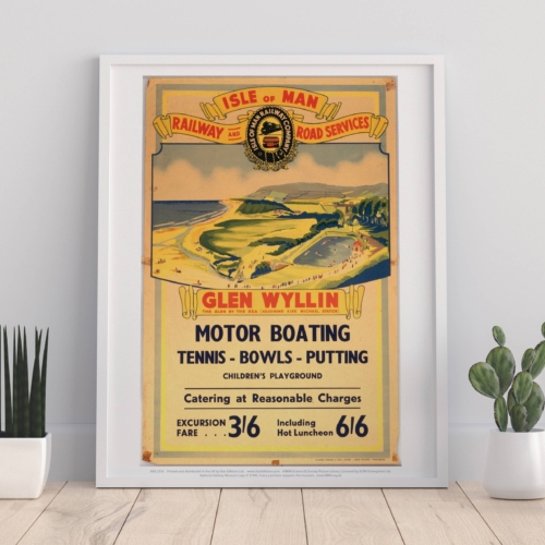 Premium Isle of Man – Glen Wyllin Motor Boating art print measures 11×14 inches in size (28cm x 35.5cm).