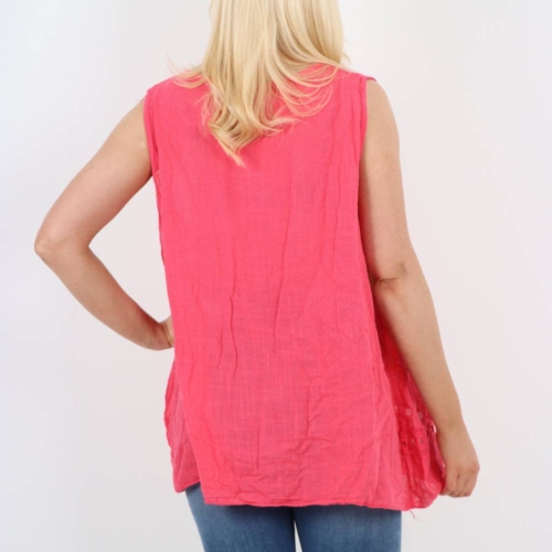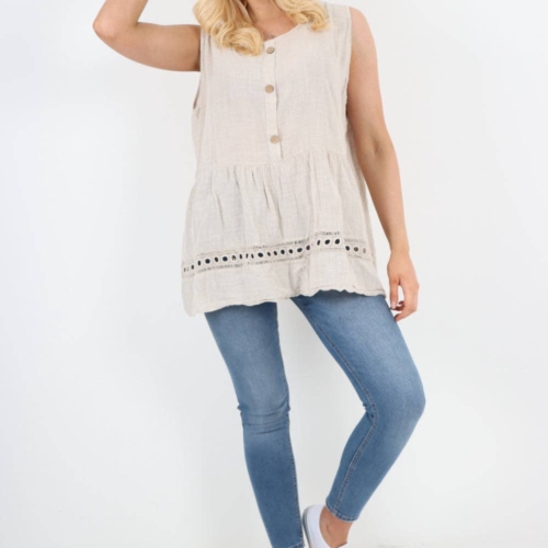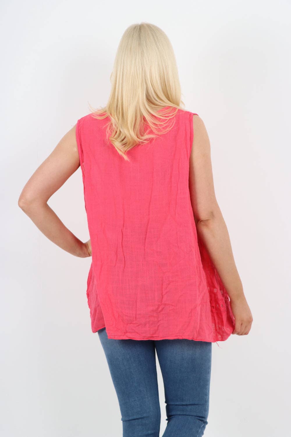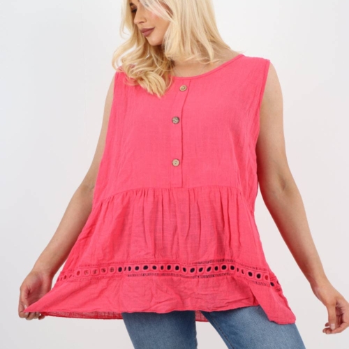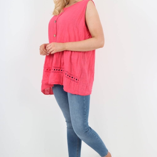Made in Italy Crochet Bottom Button Detail Cotton Vest Top Vest Top Cotton Top Button Detail Round Neck Sleeveless Made In Italy Fabric: 100% Cotton Size: One Size To Fit UK 8-18 Measurements: Pit to Pit: 26 Inches Length: Front – 30 Inches Style it your way or explore more elegant options in our Italian Dresses for Women collection.
