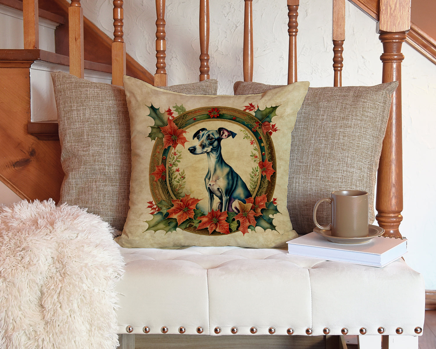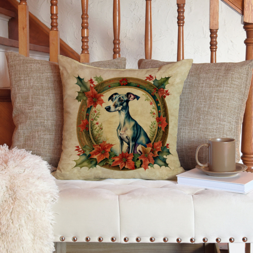 Throw Pillow featuring breed specific Italian Greyhound artwork. Celebrate Christmas with this Christmas Pillow. Add a touch of vibrancy and comfort to your outdoor seating with Caroline’s Treasures Fabric Decorative Pillow. Measuring approximately 14 inches by 14 inches, this outdoor pillow is crafted to elevate the appeal of your patio furniture, infusing it with vivid color and artistic flair. The pillow includes a 100% Polyester Fabric sham filled with a quality pillow form to provide superior comfort. Innovatively made from our brand new material, specifically woven for its water resistance, this pillow is designed for durability. The soft canvas fabric offers versatility in use, fit for your indoor couch or your outdoor patio, porch, or veranda. The fabric is dyed with colorfast dyes built for resilience against weather conditions, ensuring the pillow retains its beauty over time. Constructed by sewing three fabric pieces to create a sham, the polyester insert is then nestled inside to form the pillow, resulting in an overstuffed pillow that maintains its shape. Both the sham and the pillow insert are proudly made in the United States. As the pillows are handcrafted, there may be minor variations in size, further enhancing their unique charm. Experience comfort in style with Caroline’s Treasures Fabric Decorative Pillow.