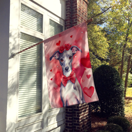 House Flag featuring breed specific Italian Greyhound artwork. Celebrate Valentine’s Day with this Valentine’s Day Large Flag. Presenting our Heavy Duty Polyester House Size Decorative Sleeve Pole Flag, a vibrant addition to enhance the aesthetic appeal of your home. This large decorative flag, measuring approximately 28 x 40 inches, offers ample coverage and visibility. Each flag is meticulously sewn and made individually, ensuring a unique piece that may slightly vary in size. It’s a sleeve pole flag, designed to fit a standard decorative flag pole effortlessly. Please note that the flag pole and bracket are not included and should be purchased separately. What sets our flag apart is its dual-sided print. The design is mirrored on both sides of the fabric, allowing for uniform visibility regardless of the angle. Printed in full color, our flag showcases vibrant hues that truly stand out. To ensure lasting vibrancy and durability, the dyes are heat-set into the fabric. This ensures your flag remains bright and captivating through various weather conditions. Elevate the look of your home with our Heavy Duty Polyester House Size Decorative Sleeve Pole Flag!