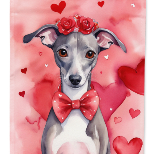House Flag featuring breed specific Italian Greyhound artwork. Celebrate Valentine’s Day with this Valentine’s Day Large Flag. Presenting our Heavy Duty Polyester House Size Decorative Sleeve Pole Flag, a vibrant addition to enhance the aesthetic appeal of your home. This large decorative flag, measuring approximately 28 x 40 inches, offers ample coverage and visibility. Each flag is meticulously sewn and made individually, ensuring a unique piece that may slightly vary in size. It’s a sleeve pole flag, designed to fit a standard decorative flag pole effortlessly. Please note that the flag pole and bracket are not included and should be purchased separately. What sets our flag apart is its dual-sided print. The design is mirrored on both sides of the fabric, allowing for uniform visibility regardless of the angle. Printed in full color, our flag showcases vibrant hues that truly stand out. To ensure lasting vibrancy and durability, the dyes are heat-set into the fabric. This ensures your flag remains bright and captivating through various weather conditions. Elevate the look of your home with our Heavy Duty Polyester House Size Decorative Sleeve Pole Flag!