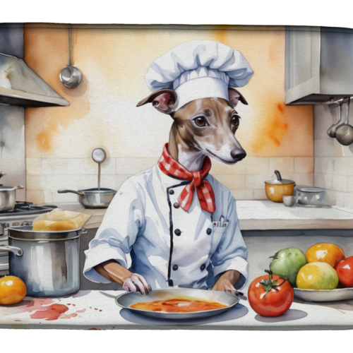 Dish Drying Mat featuring breed specific Italian Greyhound artwork. Say goodbye to messy countertops and soggy dish towels with our innovative dish drying mat. Our high-quality dish drying pad is designed to keep your countertops dry while offering a stylish and efficient solution. Whether you’re air drying dishes, glasses, stemware, silverware, pots, pans, bottles, or even fruits and vegetables, our dish mat is the perfect choice. The 14 inches x 22 inches size fits most counters and dish drying racks, and the non-slip design ensures stability. Made with water-absorbent polyester and a polyurethane foam insert, our dish drying mat is not only functional but also durable. It’s machine washable and printed in the USA for long-lasting use. The beautiful artwork adds flair to your kitchen decor, making it a perfect housewarming gift or present for any occasion. Upgrade your kitchen experience with our absorbent and versatile dish drying mat.