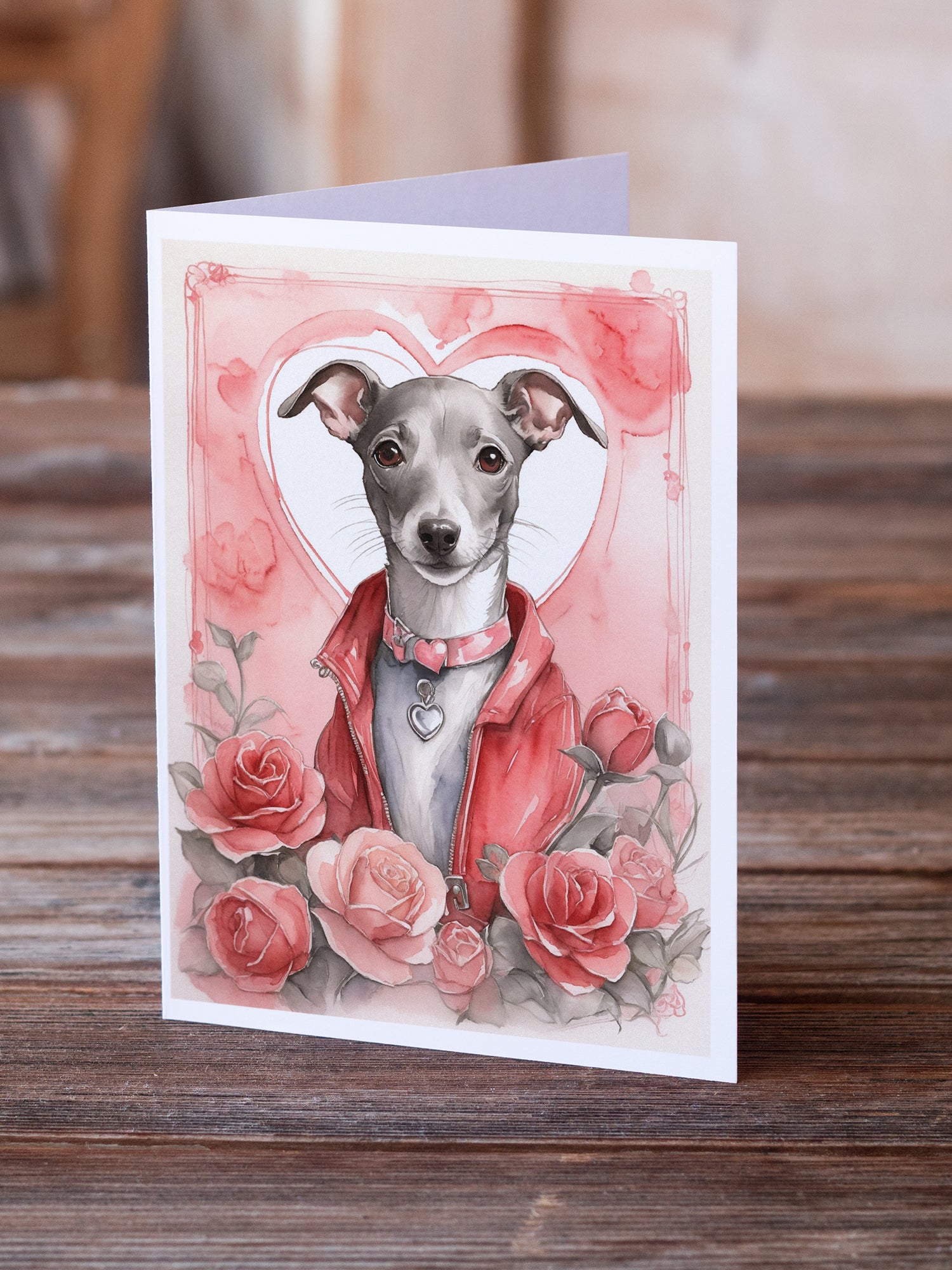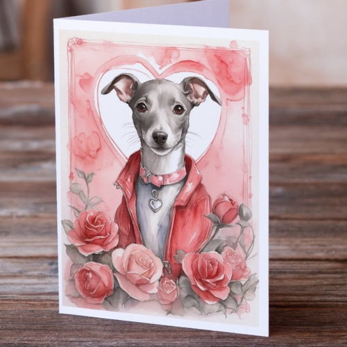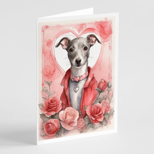Italian Greyhound Valentine Roses Greeting Cards Pack of 8