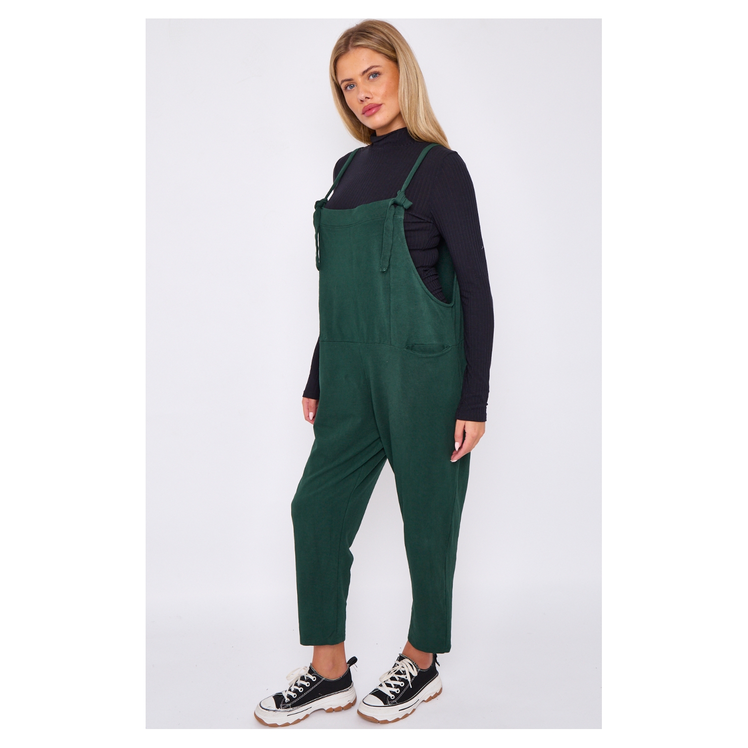 Italian One Size Soft Jersey Plain Cotton Dungaree Green