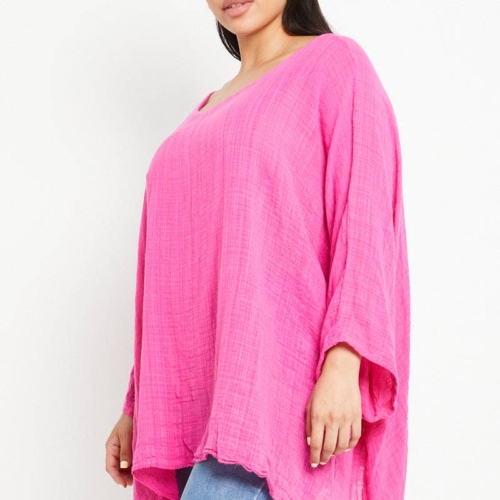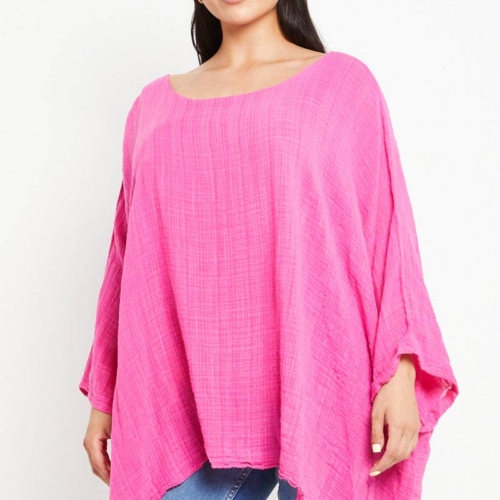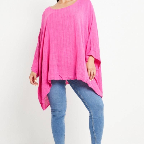 Made In Italy Lagenlook Cotton Plain Batwing Kimono Top Plain Batwing Top Batwing Sleeve Kimono Top Scoop Neck Hanky Hem Made In Italy Size: One Size To Fit UK 8-20 Size Details: Pit to Pit – 23 inches Length: Middle – 28 inches, Side – 35 inches Pair your Italian Plain Cotton Batwing Top with our elegant collection of Italian dresses for women to create effortlessly chic looks for any occasion.