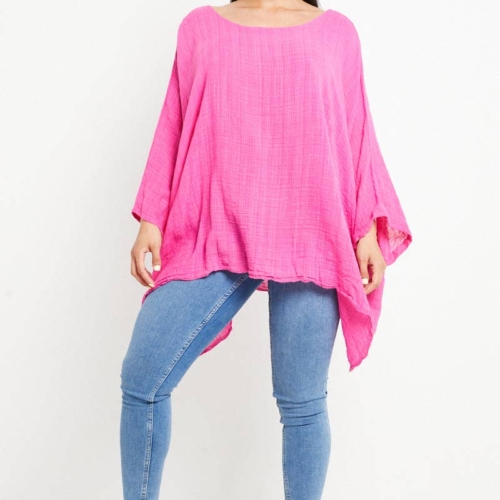 Made In Italy Lagenlook Cotton Plain Batwing Kimono Top Plain Batwing Top Batwing Sleeve Kimono Top Scoop Neck Hanky Hem Made In Italy Size: One Size To Fit UK 8-20 Size Details: Pit to Pit – 23 inches Length: Middle – 28 inches, Side – 35 inches Pair your Italian Plain Cotton Batwing Top with our elegant collection of Italian dresses for women to create effortlessly chic looks for any occasion.