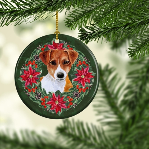 Ceramic Ornament featuring breed specific Jack Russell Terrier artwork. Celebrate Christmas with this Christmas Ornament. This Ceramic Ornament is from Caroline’s Treasures collection Christmas Poinsetta Wreath. Add a touch of personalized charm to your Christmas tree this holiday season with our Ceramic Ornament. Measuring 2.8125 inches in diameter, this round porcelain ornament beautifully reflects your festive lights, enhancing your holiday decor. The gloss surface sets off the vibrant, full-color artwork contributed by one of our talented artists, bringing a pop of color and joy to your tree. This Ceramic Ornament doesn’t stop at being merely decorative. The white back is designed for personalization. Write a heartfelt message, mark a special year, or inscribe a date with a paint pen or a permanent marker to create a treasured memento. Please ensure you allow any personalization to dry thoroughly before handling to maintain the pristine finish. Included with the ornament is a delicate gold cord for easy hanging. Made in the USA, this Ceramic Ornament makes an exceptional gift for a pet sitter, teacher, family member, or anyone you wish to share a little Christmas magic with. With its blend of style, charm, and personal touch, it’s a meaningful addition to any Christmas tree. This Ornament is from Caroline’s Treasures Dogs category of products.
