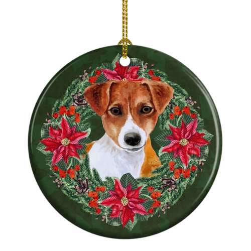 Ceramic Ornament featuring breed specific Jack Russell Terrier artwork. Celebrate Christmas with this Christmas Ornament. This Ceramic Ornament is from Caroline’s Treasures collection Christmas Poinsetta Wreath. Add a touch of personalized charm to your Christmas tree this holiday season with our Ceramic Ornament. Measuring 2.8125 inches in diameter, this round porcelain ornament beautifully reflects your festive lights, enhancing your holiday decor. The gloss surface sets off the vibrant, full-color artwork contributed by one of our talented artists, bringing a pop of color and joy to your tree. This Ceramic Ornament doesn’t stop at being merely decorative. The white back is designed for personalization. Write a heartfelt message, mark a special year, or inscribe a date with a paint pen or a permanent marker to create a treasured memento. Please ensure you allow any personalization to dry thoroughly before handling to maintain the pristine finish. Included with the ornament is a delicate gold cord for easy hanging. Made in the USA, this Ceramic Ornament makes an exceptional gift for a pet sitter, teacher, family member, or anyone you wish to share a little Christmas magic with. With its blend of style, charm, and personal touch, it’s a meaningful addition to any Christmas tree. This Ornament is from Caroline’s Treasures Dogs category of products.