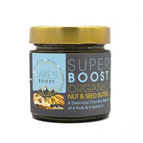 This spread will make your taste buds dance- it’s like no other nut butter you have ever tasted. 6 nuts & 4 seeds in one jar! Complex flavours with an earthiness from the seeds and extra crunch from roughly chopped premium nuts make Jake’s Boost Superboost a perfect match for smoothies and porridge but also as an ingredient in savoury dishes like a stir-fry and your favourite cake. It might even give you superpowers….