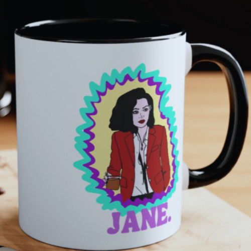 Retro, 90s mug designed and sold by female independent artist, Haunted Fembot. This vintage style tee, featuring everyone’s favorite artist all grown up, is a throwback to 90s grunge and classic MTV. The graphic, depicting the thirty something, queer icon, is printed thinly on a high quality, jersey cotton Bella & Canvas tee for a thrift store look and feel. For generation X and millennial fans, this old school t-shirt is the perfect birthday or holiday gift. An icon for artists and creatives with a macabre sense of humor and style, this character is the poster girl for alternative artists, painters, and 90s counterculture. 100% Airlume combed and ringspun cotton Bella & Canvas Tee Light fabric (4.2 oz/yd² (142 g/m²)) Retail fit Tear away label Unisex sizes [size chart in product photos] *Microwave and dishwasher safe