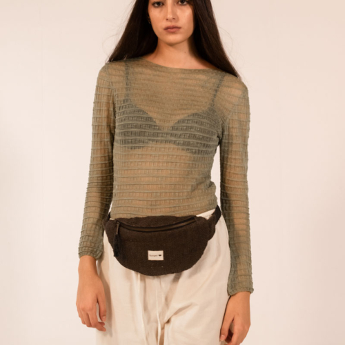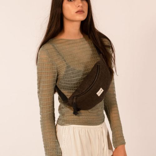 Plant-based 100% dyed hemp fabric made in the looms of Mohan. The waistbag is handmade in Rawal’s workshop.