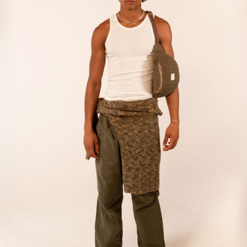Plant-based 100% dyed hemp fabric made in the looms of Mohan. The waistbag is handmade in Rawal’s workshop.