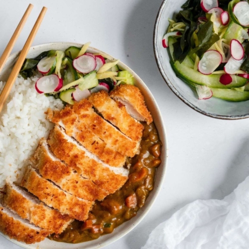 Experience the authentic flavours of Japan with our Chicken Katsu Curry, short grain rice and pickled radish & cucumber salad.