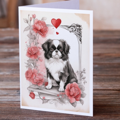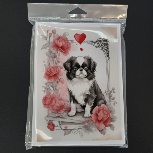Japanese Chin Valentine Roses Greeting Cards Pack of 8
