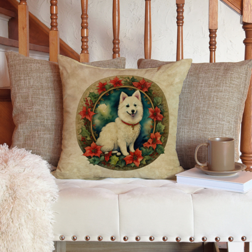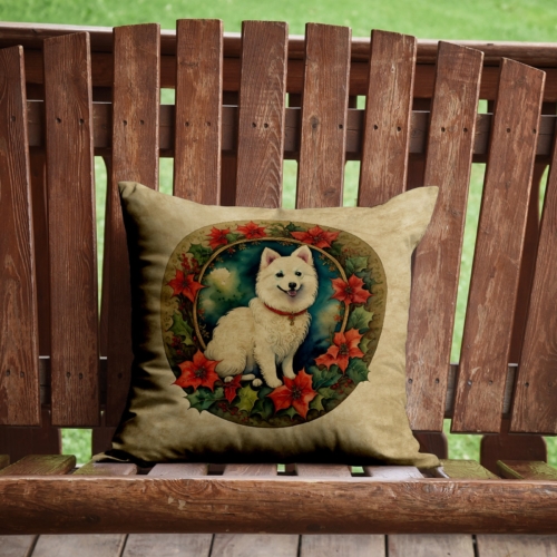 Throw Pillow featuring breed specific Japanese Spitz artwork. Celebrate Christmas with this Christmas Pillow. Add a touch of vibrancy and comfort to your outdoor seating with Caroline’s Treasures Fabric Decorative Pillow. Measuring approximately 14 inches by 14 inches, this outdoor pillow is crafted to elevate the appeal of your patio furniture, infusing it with vivid color and artistic flair. The pillow includes a 100% Polyester Fabric sham filled with a quality pillow form to provide superior comfort. Innovatively made from our brand new material, specifically woven for its water resistance, this pillow is designed for durability. The soft canvas fabric offers versatility in use, fit for your indoor couch or your outdoor patio, porch, or veranda. The fabric is dyed with colorfast dyes built for resilience against weather conditions, ensuring the pillow retains its beauty over time. Constructed by sewing three fabric pieces to create a sham, the polyester insert is then nestled inside to form the pillow, resulting in an overstuffed pillow that maintains its shape. Both the sham and the pillow insert are proudly made in the United States. As the pillows are handcrafted, there may be minor variations in size, further enhancing their unique charm. Experience comfort in style with Caroline’s Treasures Fabric Decorative Pillow.