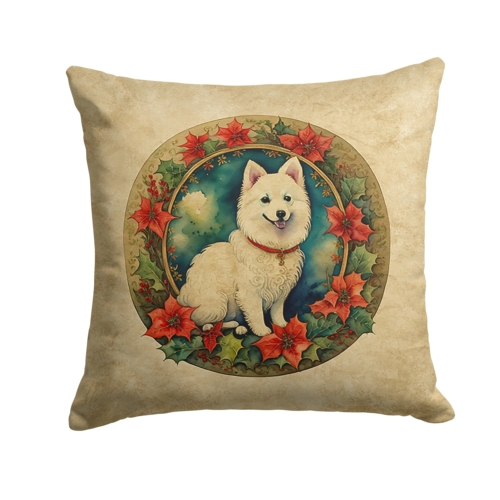 Throw Pillow featuring breed specific Japanese Spitz artwork. Celebrate Christmas with this Christmas Pillow. Add a touch of vibrancy and comfort to your outdoor seating with Caroline’s Treasures Fabric Decorative Pillow. Measuring approximately 14 inches by 14 inches, this outdoor pillow is crafted to elevate the appeal of your patio furniture, infusing it with vivid color and artistic flair. The pillow includes a 100% Polyester Fabric sham filled with a quality pillow form to provide superior comfort. Innovatively made from our brand new material, specifically woven for its water resistance, this pillow is designed for durability. The soft canvas fabric offers versatility in use, fit for your indoor couch or your outdoor patio, porch, or veranda. The fabric is dyed with colorfast dyes built for resilience against weather conditions, ensuring the pillow retains its beauty over time. Constructed by sewing three fabric pieces to create a sham, the polyester insert is then nestled inside to form the pillow, resulting in an overstuffed pillow that maintains its shape. Both the sham and the pillow insert are proudly made in the United States. As the pillows are handcrafted, there may be minor variations in size, further enhancing their unique charm. Experience comfort in style with Caroline’s Treasures Fabric Decorative Pillow.