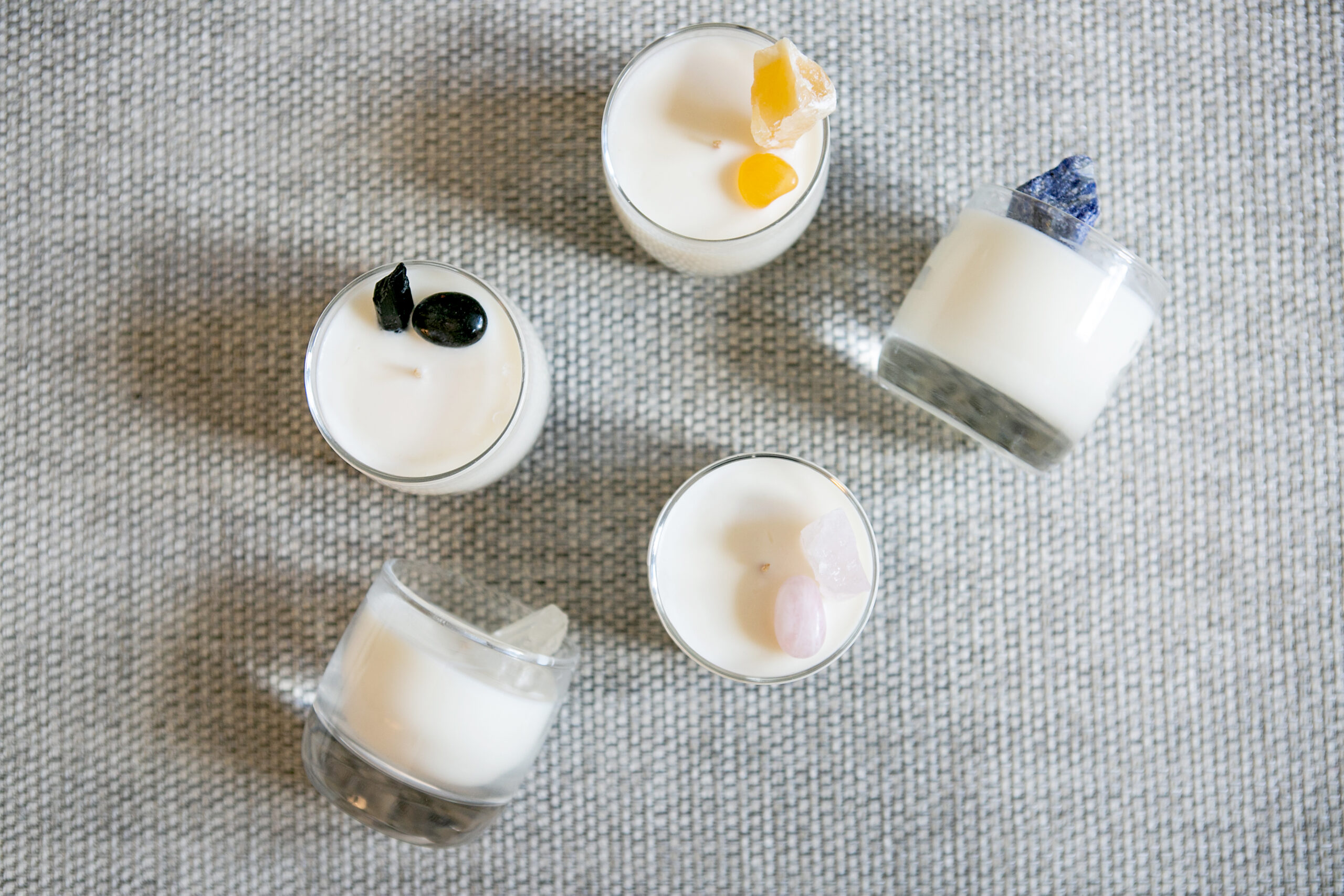 The crystals can of course be removed before lighting so you can sit them next to the candle glass or carry in your pocket if you prefer.