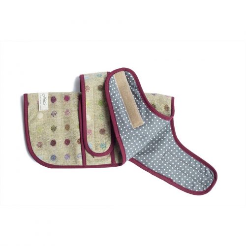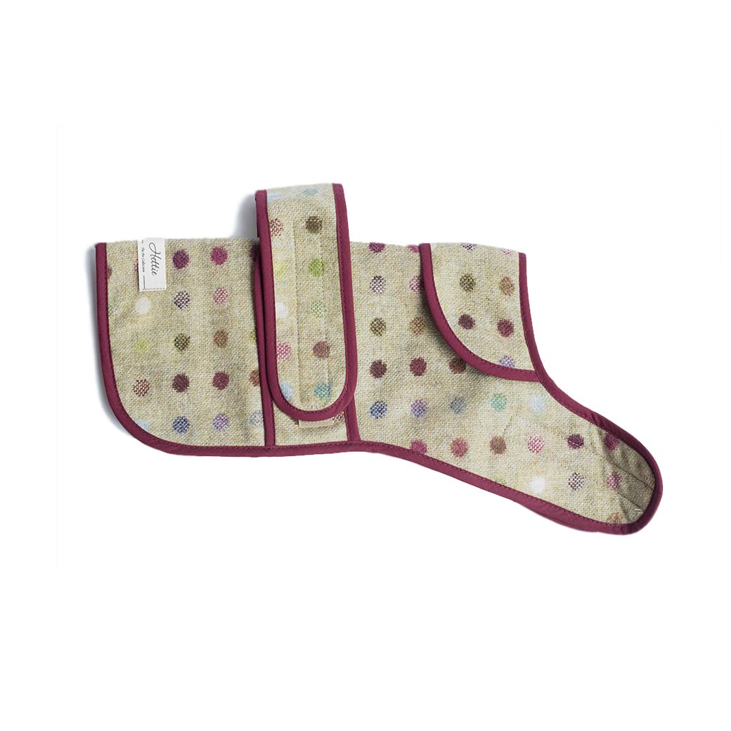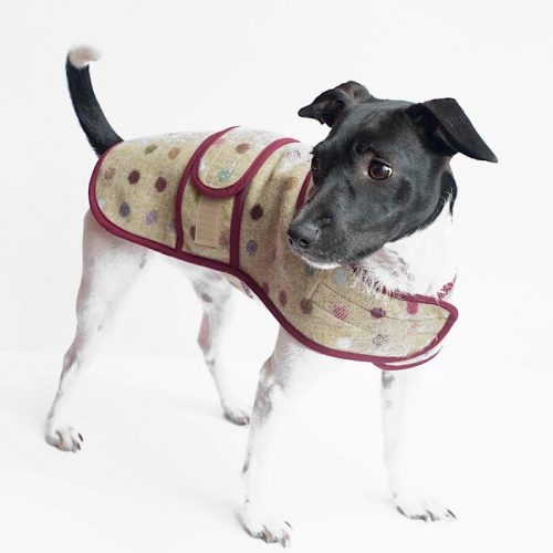 Dress your dog in style with our Jasper dog coat. Available in a variety of gorgeous fabrics, why not coordinate your four-legged friend with your outfit ! This coat has adjustable straps around the waist and neck for a comfortable fit, and a hole under the collar so they can walk on the lead easily.