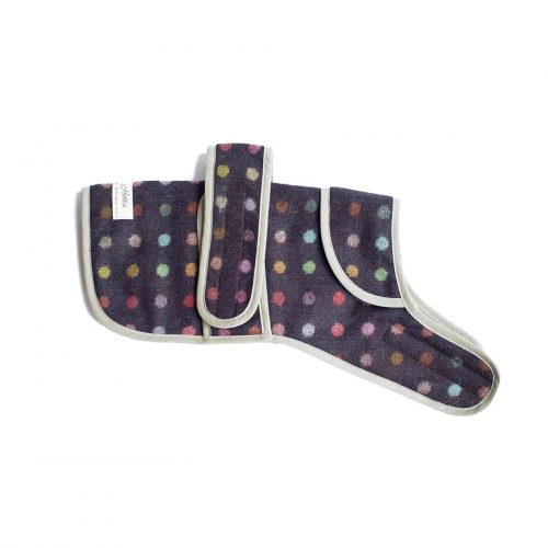 Dress your dog in style with our Jasper dog coat. Available in a variety of gorgeous fabrics, why not coordinate your four-legged friend with your outfit ! This coat has adjustable straps around the waist and neck for a comfortable fit, and a hole under the collar so they can walk on the lead easily.