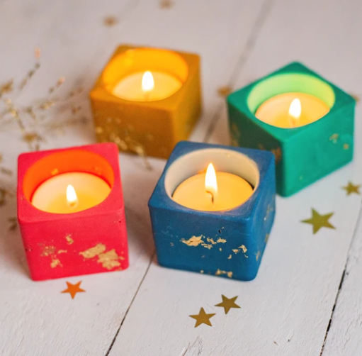 This quirky tea light holder set is made from jesmonite in red, green, mustard & dark blue. They’re a cute addition to any desk, shelf, table or fireplace, and a great gift. It is also perfect for tiny cacti or other succulents.