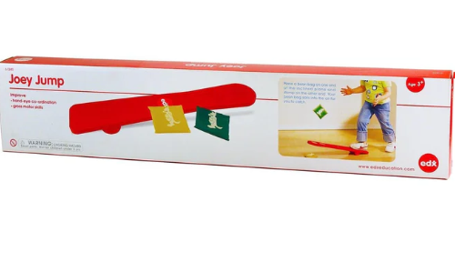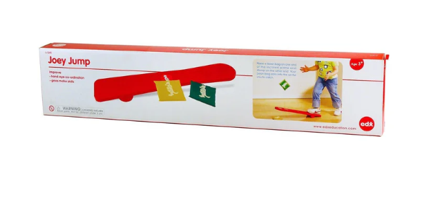 A fun and exciting way to practice catching skills independently, our edx education® Joey Jump inclined plane will help your child to develop their hand-eye coordination and gross motor skills.Place a bean bag one end and stomp on the other end to propel the bean bag into the air ready to catch! Set challenges to see how many times you can catch the bean bag without letting it drop.For use indoors or outdoors, easy to clean, made from hard-wearing robust plastic, with a textured anti-slip foot pad. Set includes: 1 x Joey Jump and 2 Bean BagsSize LxWxH: 72cm x 15cm x 6.5cmAge: 3 yrs+