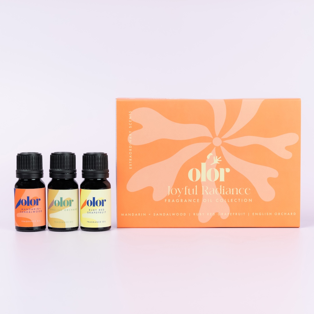 Save £13 on this luxury gift set worth £42. Explore our gift set featuring a trio of expertly selected fragrance oils, each one handpicked to bring a touch of luxury and elegance to your home. Handcrafted luxury fragrances to invigorate, uplift & bring joy to your senses.Fragrance Notes Mandarin + Sandalwood Evoke the senses with invigorating top notes of mandarin, pink pepper and cardamon followed by a sensual heart of coriander leaf, white freesia and sandalwood sat on a velvety base of the cocoa bean.English OrchardEnjoy the fresh and fruity top notes of apple and pear combined with lemon and mandarin supported by a heart of freesia, waterlily and lychee resting on a musk woody base. Ruby Red Grapefruit Enjoy the invigorating blend of ruby red grapefruit, lemon and mandarin with notes of jasmine, resting on a woody heart of patchouli and vetiver.