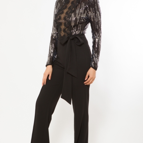 -SEQUINS PRINT TOP DETAILED FASHION JUMPSUIT