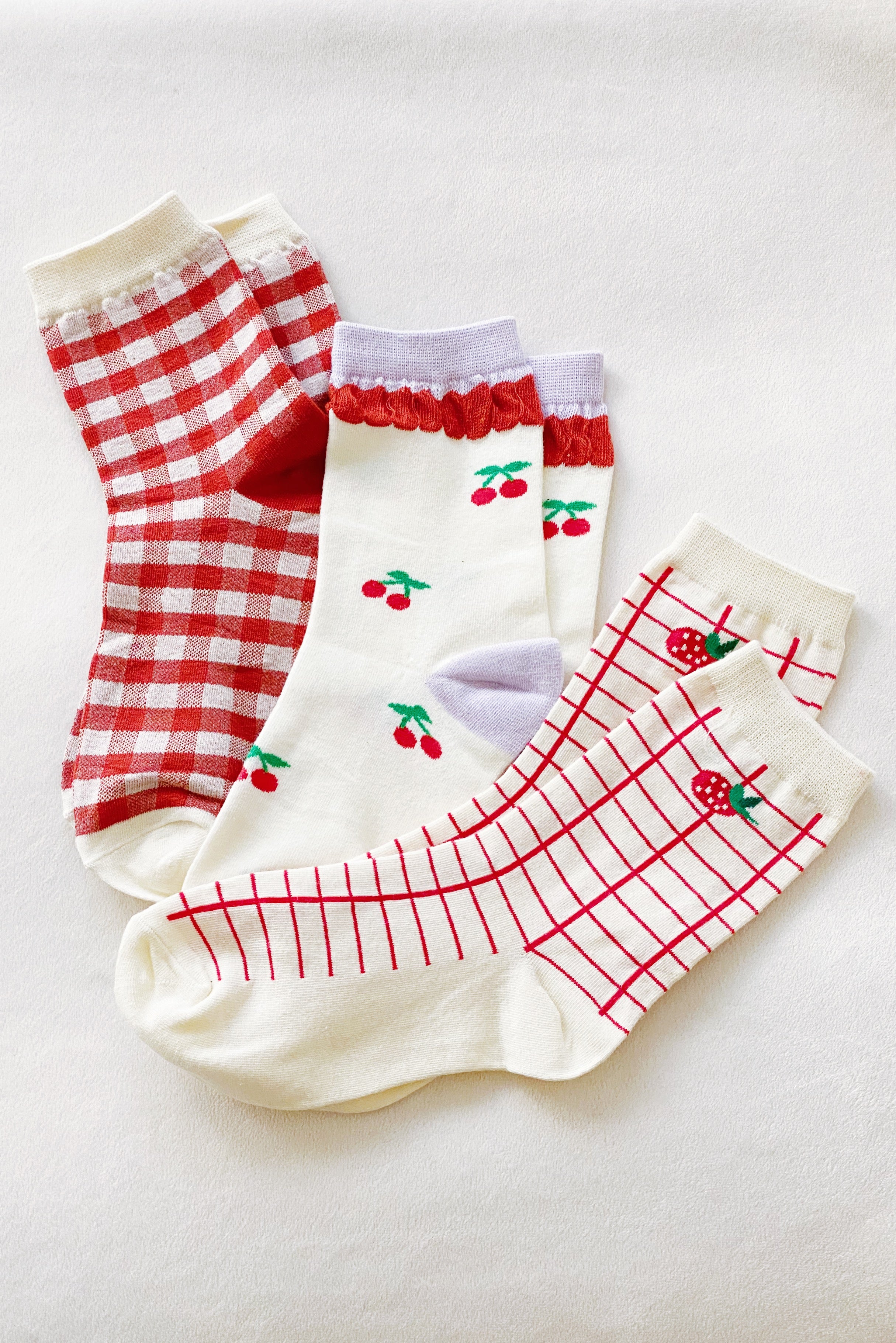 The perfect mix of trendy and comfy! This sock set comes with 3 sock pairs with the cutest colors and patterns! Each pair comes with a different pattern and detail that is carefully picked and packaged nicely! 75% Cotton 20% Polyester 5% Elastic One size fits most: US shoe size 5.5-9. Made in China