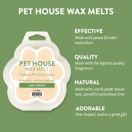 Juicy Melon is a delicious blend of honeydew and cantaloupe and orange with a pinch of sugar.***All wax melts ship in cases of 12. You can mix a case with up to two fragrances (six units per fragrance).***One Fur All Products may not be sold on Amazon, Ebay or other 3rd party websites.Even if you don’t have a pet odor problem, Pet House Wax Melts make every pet-loving home smell fresh and clean. When guests come to your home, you’ll be CONFIDENT that your home smells great. Our wax melts are extremely effective without overpowering fragrance.Pet House Wax Melts include the powerful combination of an effective odor neutralizer and the highest quality fragrances. Pet House Wax Melts are adorably packaged in the shape of the paw and make a great gift for any pet parent.