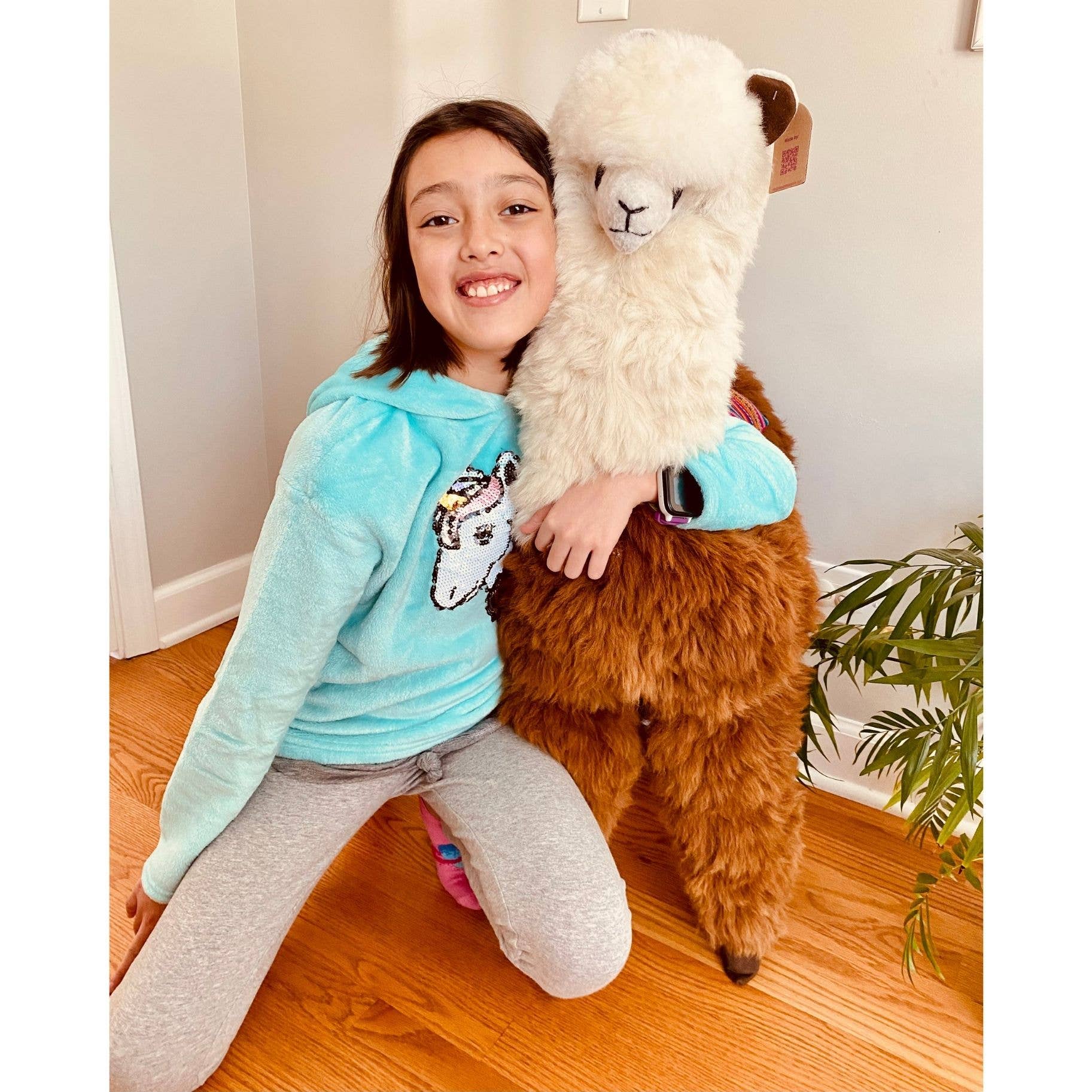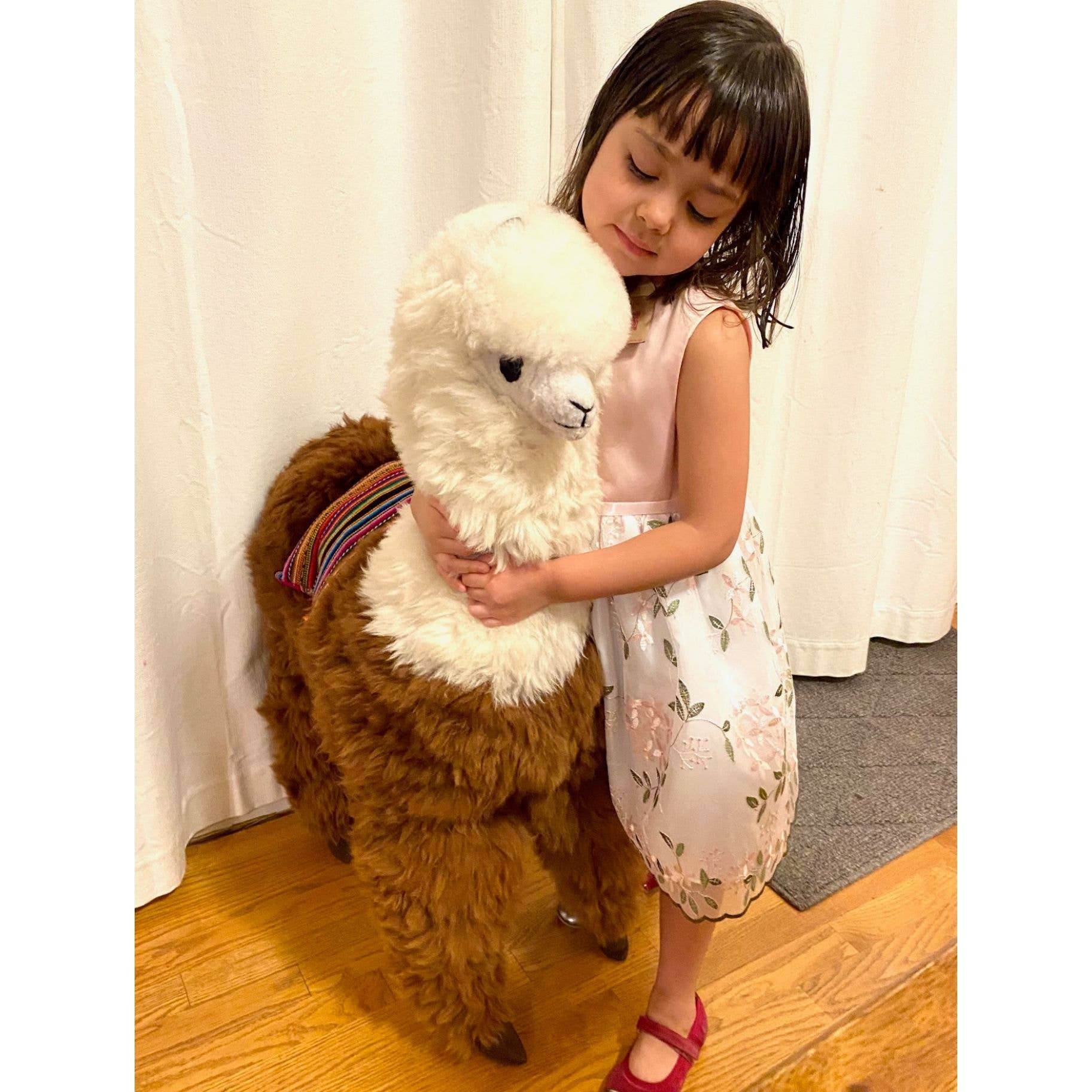 Blossom Inspirations proudly presents the Jumbo Alpaca, part of our zoo toy collection. Handmade by Peruvian artisans using recycled alpaca fur, each piece is a unique reflection of sustainable craftsmanship. With natural fur shades of white, beige, and brown, and embroidered cotton thread eyes for child safety, this alpaca combines ethical production with charming design.Features:Size: Jumbo (32″ x 19″ x 8″)Saddle Included: Adds an authentic, vibrant touch.Sustainable: Made from recycled materials, supporting fair trade practices.Ideal for retailers looking for eco-conscious, artisan-made products that tell a cultural story. Perfect for toy stores, gift shops, and sustainable-focused businesses for display.