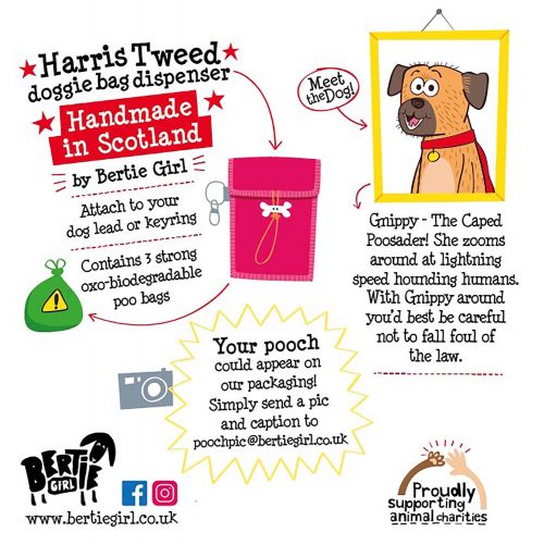 Guaranteed to bring a smile, the wee pouch measures around 6.5 cm x 8.5 cm and can attach to your dog lead or keyring. Containing three oxo-biodegradable doggie bags it ensures you always have that emergency stash.