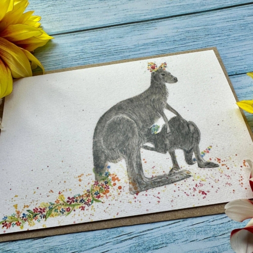 Kangaroo and Joey Eco Friendly Card Colourful Cute Art Blank | Friend | Colourful Art | Wildlife | Friend | Eco Friendly Card | Australia | Colourful | Nature | Occasion | Greetings | Watercolour | Jen Winnett Art