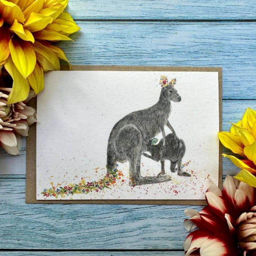 Kangaroo and Joey Eco Friendly Card Colourful Cute Art Blank | Friend | Colourful Art | Wildlife | Friend | Eco Friendly Card | Australia | Colourful | Nature | Occasion | Greetings | Watercolour | Jen Winnett Art
