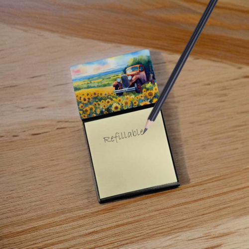 Sticky Note Holder featuring breed specific Kansas Sunflowers artwork. Add a touch of creativity and flair to your desk with the Decorative Sticky Note Holder from Caroline’s Treasures. This uniquely designed sticky note dispenser will not only keep your notes in one place but also add an artistic element to your workspace. The top of the holder features beautiful artwork that is sure to catch the eye. Crafted for convenience, this sticky note holder comes with a small pad of 3-inch x 3-inch sticky notes at the bottom. The holder is designed for easy refilling; simply remove the last sheet of a new sticky note pad and stick it onto the board. This feature ensures you will always have sticky notes at your disposal. This Sticky Note Holder makes a perfect gift. Be it for your colleagues at work, your Facebook friends, or even your dog groomer or hairdresser, this versatile product fits the bill. You can use it for making grocery lists, leaving notes for loved ones, or for jotting down important reminders. The bottom board is rigid and can be magnetized by adding a business card size magnet to the back (sold separately). This makes it even more versatile, allowing you to place it on a refrigerator or any other magnetic surface. With this Sticky Note Holder, you’re not only organizing your notes, but also personalizing your space.