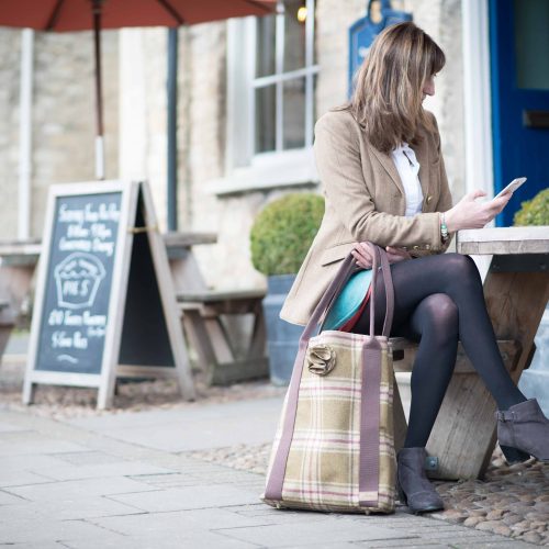 The largest of our bags , with an individual inside pocket separated into two compartments and a webbing strap for comfort, the Kate tote bag is perfect for long days out??and about. Big enough to carry all of your essentials , it is an ideal ??handbag for work , travelling , yummy mummy bag , shopping and sightseeing .