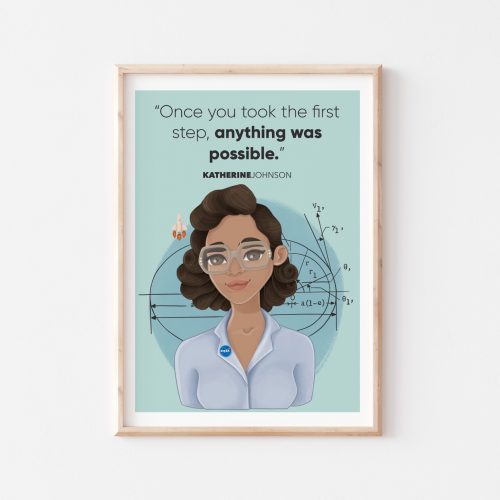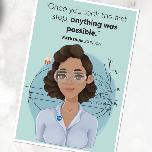Design: Original illustrated portrait of Katherine Johnson with a quote which says: