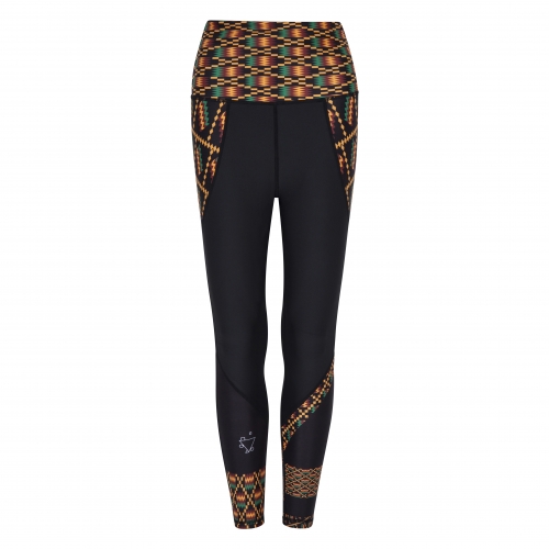 Sitting on a dark background, our Butiful design has pattern at the top of the thigh area for a streamlined effect. These performance leggings will stay in place for your whole workout. This season we have introduced several new upgrades to our engineered waistband, including a small pocket for phones or keys, plus a removable drawstring. Downward dog friendly.