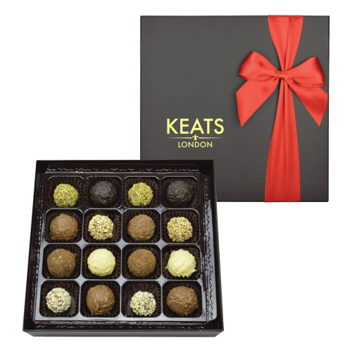 Beautifully presented in a sophisticated box finished with a red satin bow, the truffles within are encased in a delicate tissue wrapper. A hand-made premium chocolate box