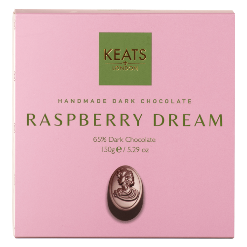 Featuring a fabulous female portrait on each chocolate, Keats dark chocolate raspberry dream is truly a dream on the tastebuds thanks to a delicious liquid raspberry filling. Packaged in a quaint high quality box with coloured sleeve, for elegant display.